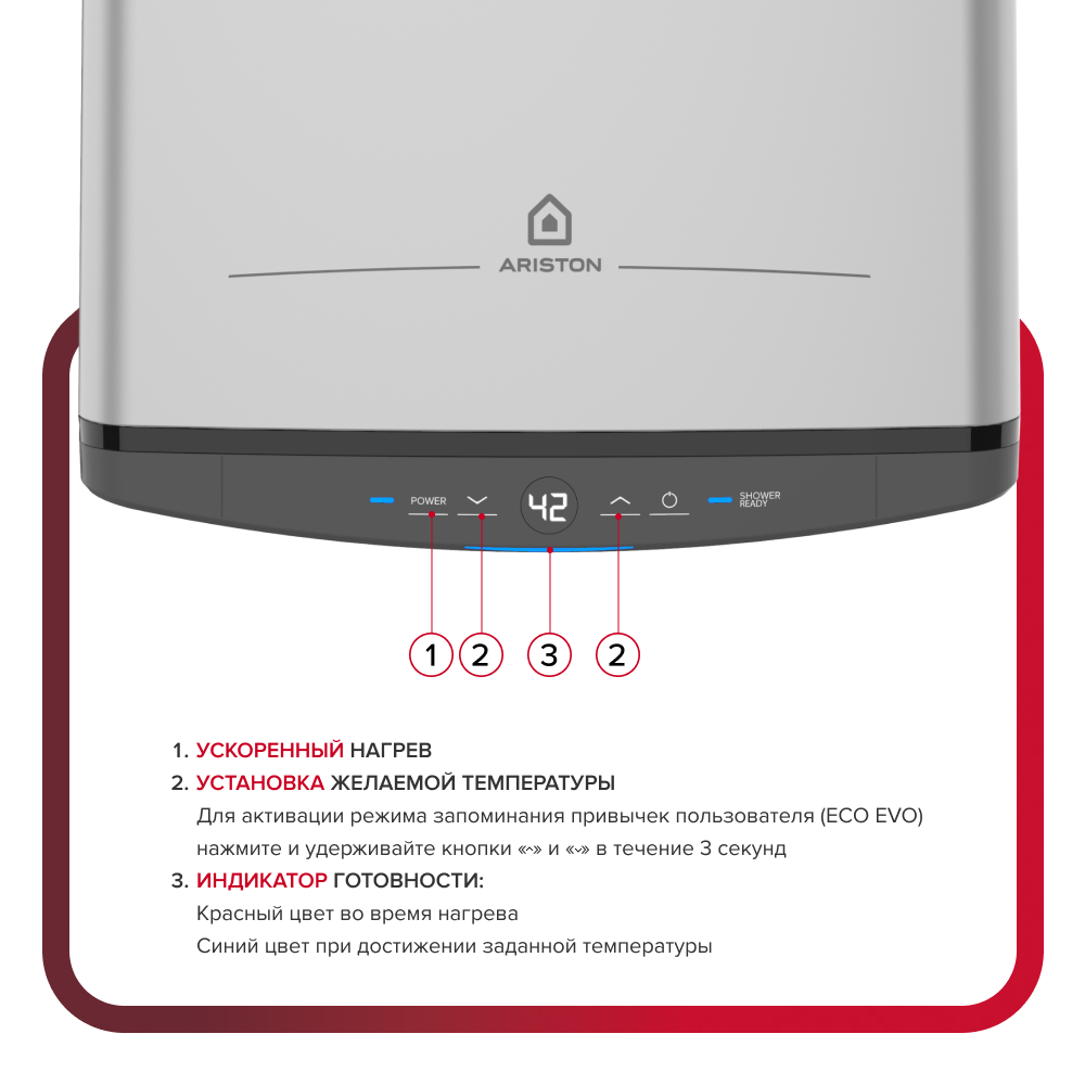 • Ускоренный нагрев (1,5 кВт + 1 кВт)