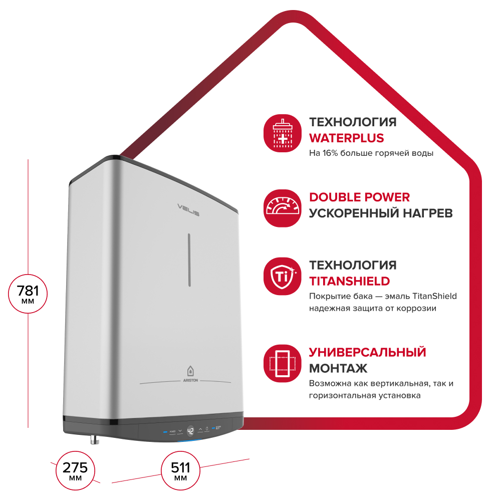 • +16% горячей воды за то же время благодаря технологии WaterPlus